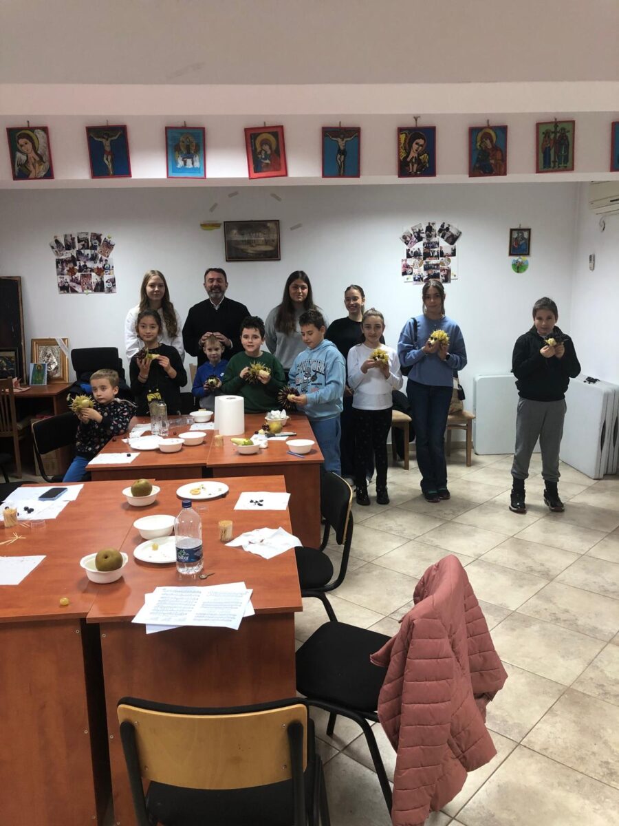 În curând, parohia s-a umplut de râsete și exclamații de bucurie, fiecare copil mândrindu-se cu creațiile sale unice. Aricii au prins contur din pere și struguri.