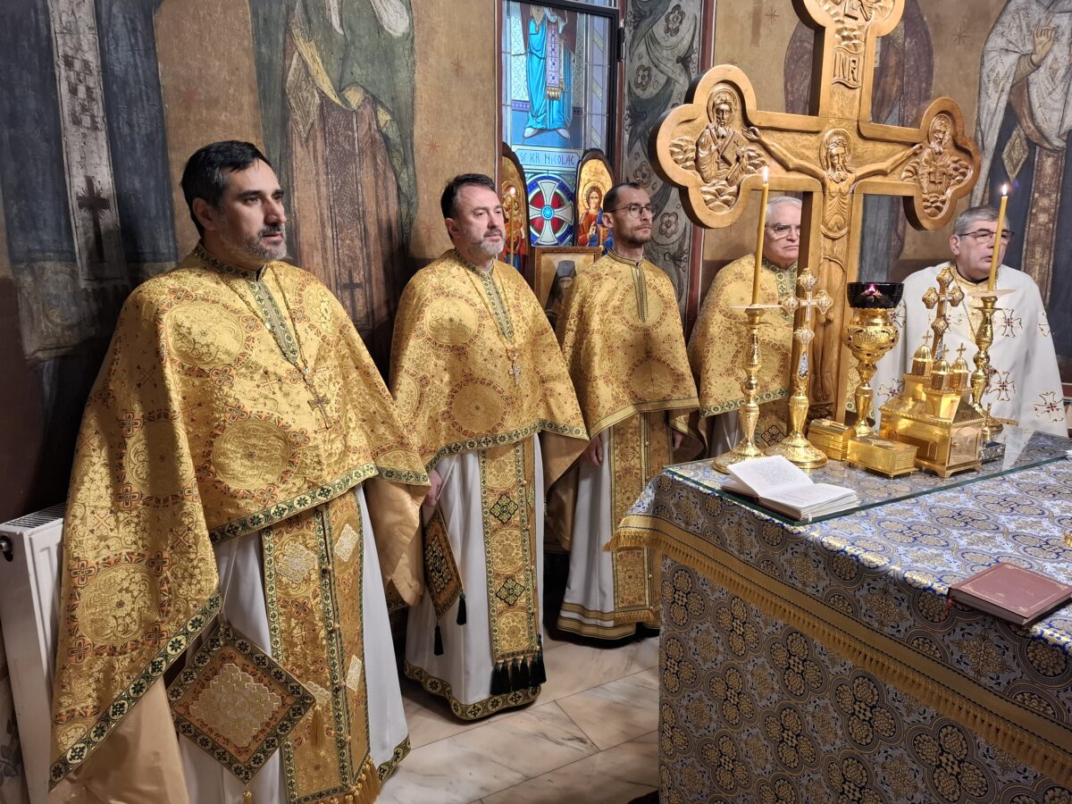 A urmat Sfânta Liturghie, în cadrul căreia corul parohial „Sfântul Ioan Maximovici” a oferit o interpretare polifonică deosebită, sporind solemnitatea momentului.