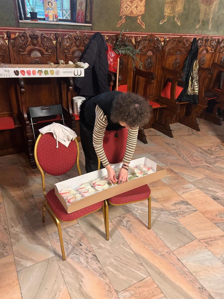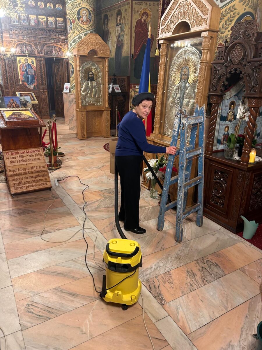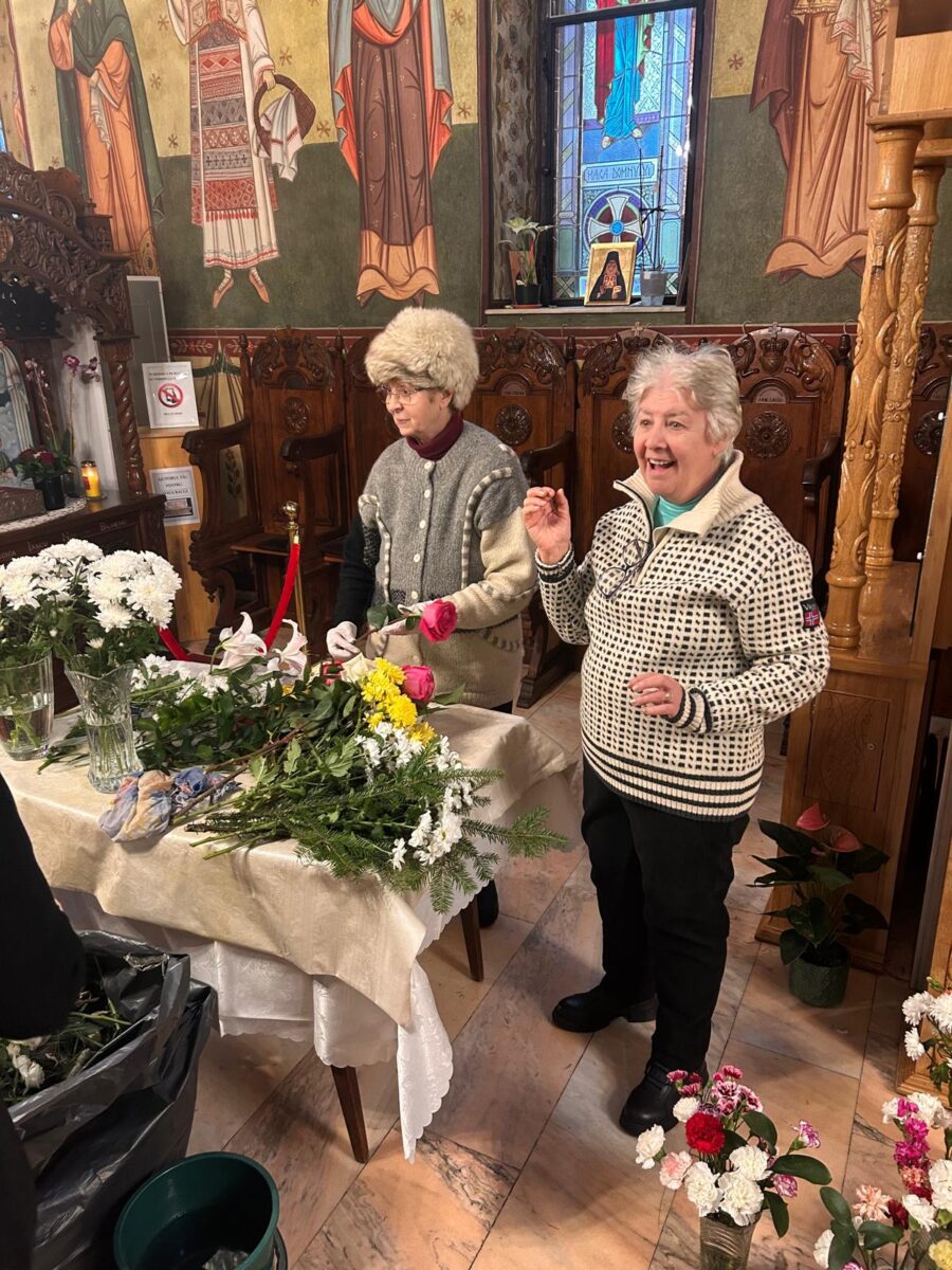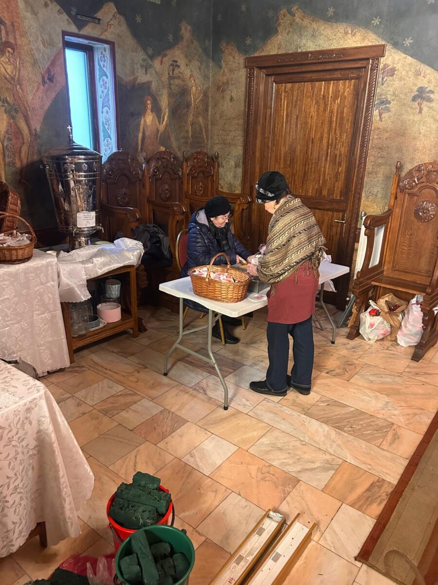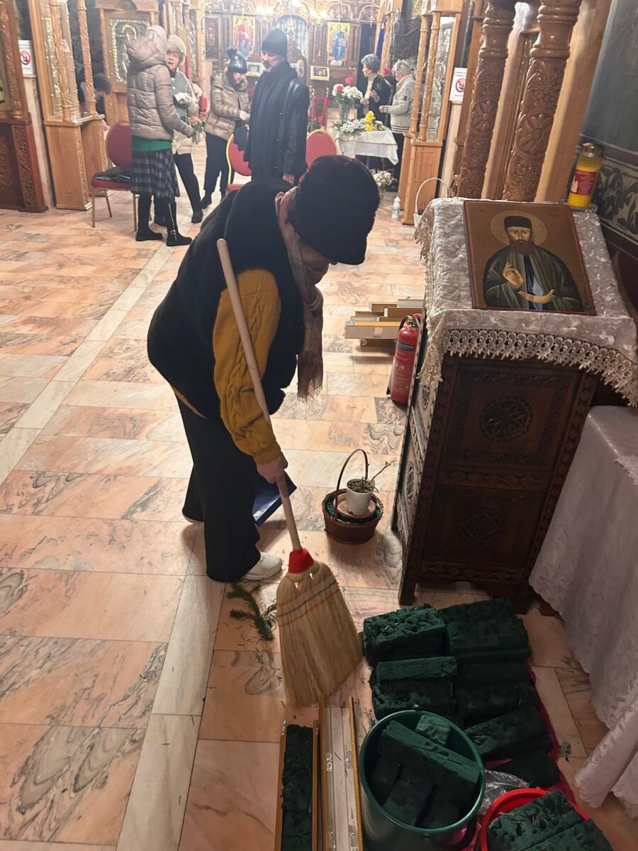 După încheierea slujbelor, doamnele din Comitetul Parohial, alături de Părinții slujitori și de Părintele Paroh Laurențiu, s-au implicat cu dăruire în pregătirea Bisericii, așezând totul în bună rânduială pentru întâmpinarea marelui praznic.