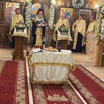 Sărbătoarea a debutat cu slujba Privegherii din seara zilei de 20 mai, la care a participat Preasfințitul părinte Ieronim Sinaitul, Episcop-vicar patriarhal, care a binecuvântat comunitatea noastră și a ținut amplu și documentat cuvânt de învățătură despre viața celor doi sfinți prăznuiți.