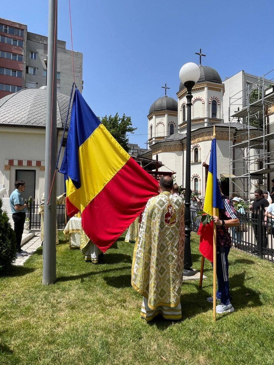 S-a săvârșit slujba intitulată Binecuvântarea unui drapel iar după stropirea tricolorului cu apă sfințită, asemenea unei scumpe icoane, acesta a fost ridicat pe scripete, în vârful catargului, de către preoții slujitori.