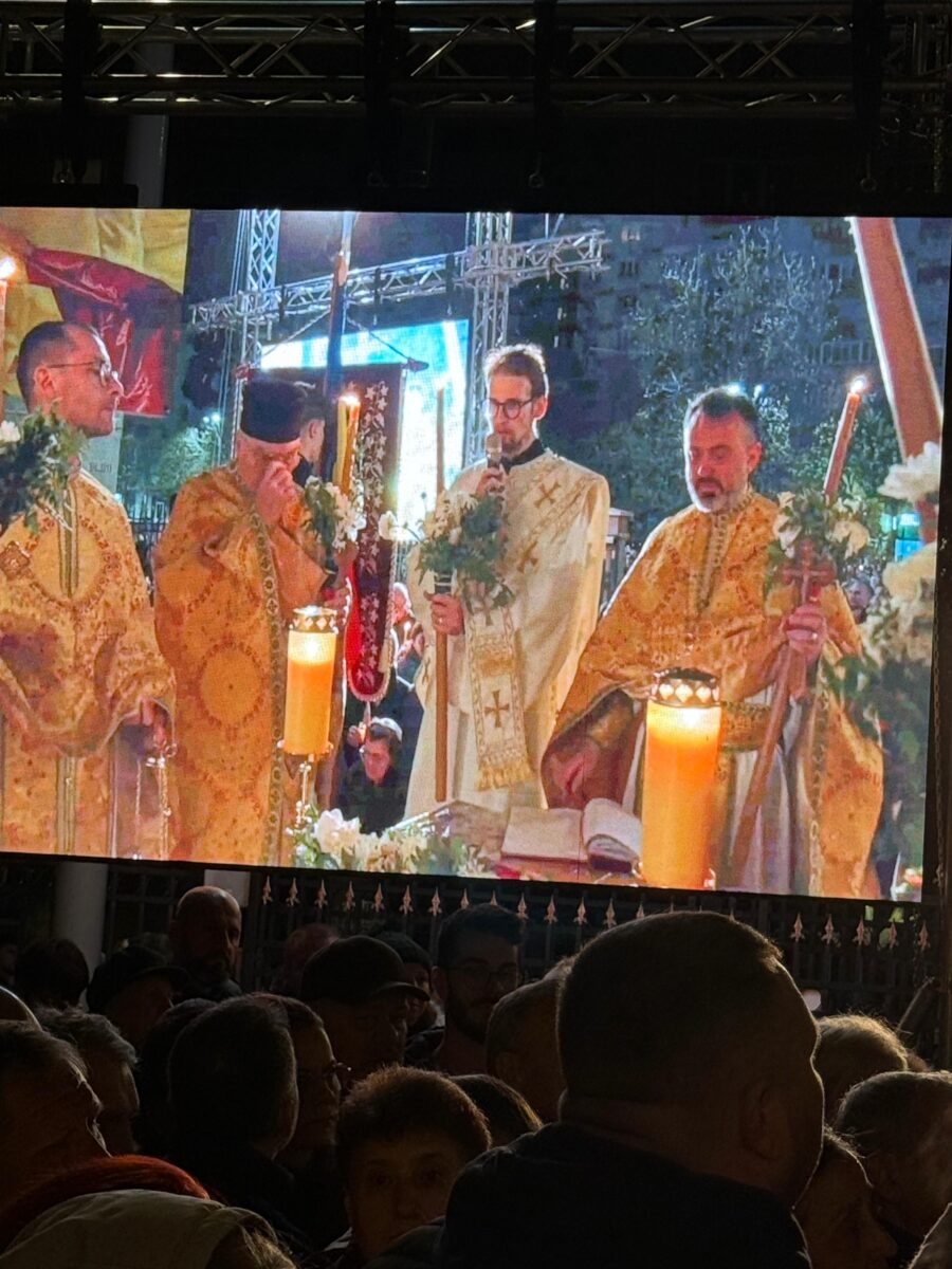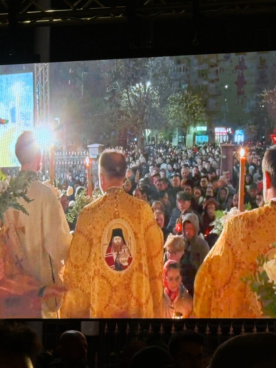 Slujba Învierii ținută pe esplanada bisericii a fost filmată și transmisă pe ecrane mari, astfel încât toți cei prezenți să poată urmări fiecare moment, chiar și din zonele mai îndepărtate.